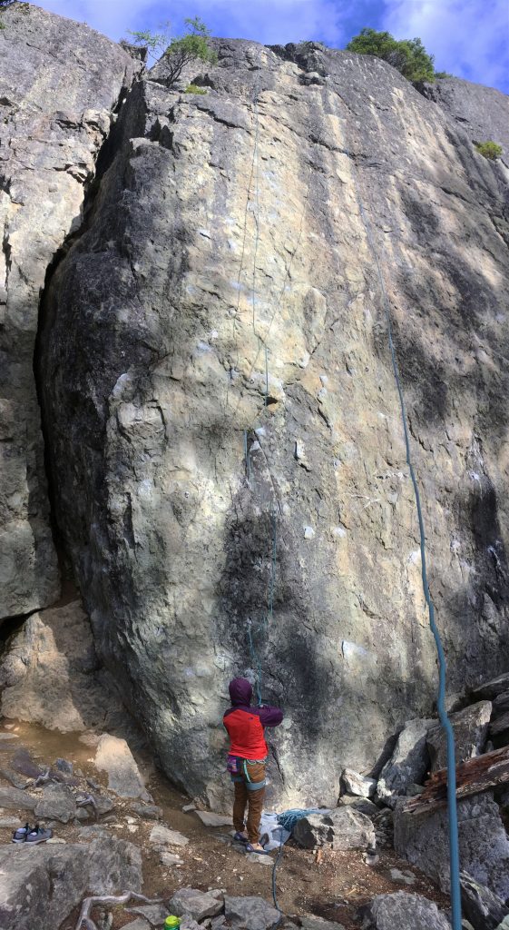 メインウォールよりも一段下のエリアに位置しているのが、スイスチーズ Swiss cheeseと呼ばれる壁。優しめの5.8と5.7があり、ここはデビューに本当に良い。私はここで外岩デビューとリードデビューしました。思い出の地です。しかもずっと日陰なので真夏の暑い時もすごーくありがたいのです。