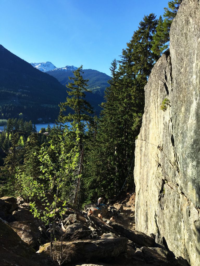ウィスラービレッジからバスでもアクセス可能、車だとビレッジから5分。ウィスラー住みで車がなくても行けることからとても人気の場所です。5.8くらいからあり、初心者にもおすすめ。私が初めて外岩デビューしたのもここノルディックです。大変お世話になってる場所。このあたりは全てが花崗岩。向こう側にはレイクがみえて、かなり気持ち良い場所です。クライミング用と思われるトレイルができていて、入口さえわかればアクセスはかなりわかりやすいと思います。